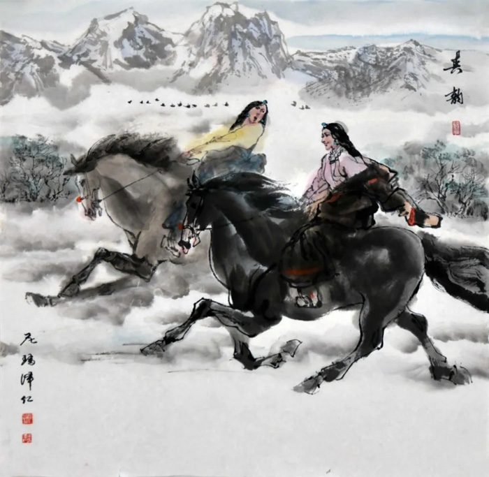 这其中包括中国美协理事、北京花鸟画研究会副会长张立辰带来的《荷花》,于此作品中,可见这位大写意花鸟画家融气势磅礴与真情实感为一,汇笔歌墨舞与平面构成为一的独特画风;董寿平入室弟子吴悦石的《栗里高风》,师承传统,笔墨生动,学养深厚;蜀地班禅画师、国家一级美术师尼玛泽仁的《春韵》,气韵生动;另有擅长写意花鸟画兼工山水和人物画的名家王书平写就的《一览众山小》,笔墨恣意挥丽,寓意淳厚开阔。