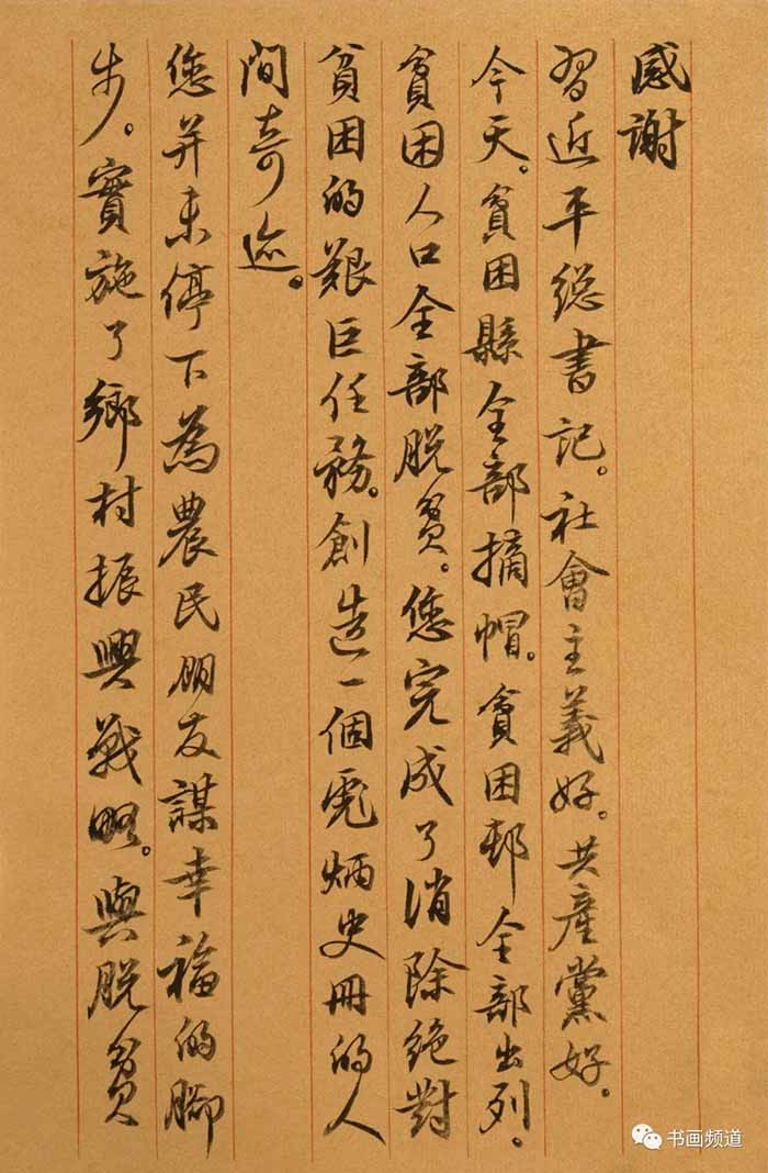 近几年,因工作原因,我去了不少贫困村,那些地方的变化令人振奋,见到的是整洁的村容,还有农民朋友发自内心的微笑!常常有人拉着我的手说,感谢共产党,感谢习近平总书记!社会主义好,共产党好!今天,贫困县全部摘帽,贫困村全部出列,贫困人口全部脱贫。您完成了消除绝对贫困的艰巨任务,创造一个彪炳史册的人间奇迹!您并未停下为农民朋友谋幸福的脚步,实施了乡村振兴战略与脱贫攻坚战略无缝衔接。可以预见,农村会更加美丽,农民会更加富裕!