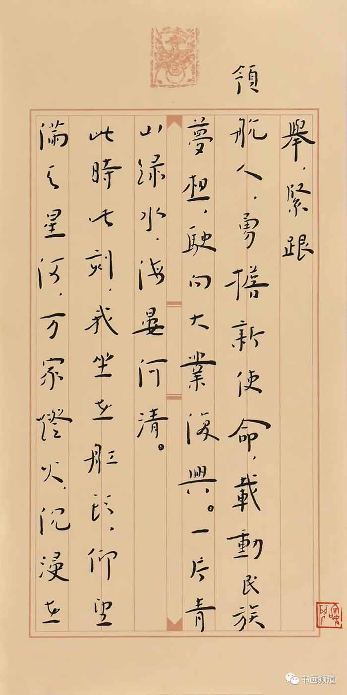 看今朝,航向定,起新程。长帆再举,紧跟领航人,勇担新使命,载动民族梦想,驶向大业复兴,一片青山绿水,海晏河清。