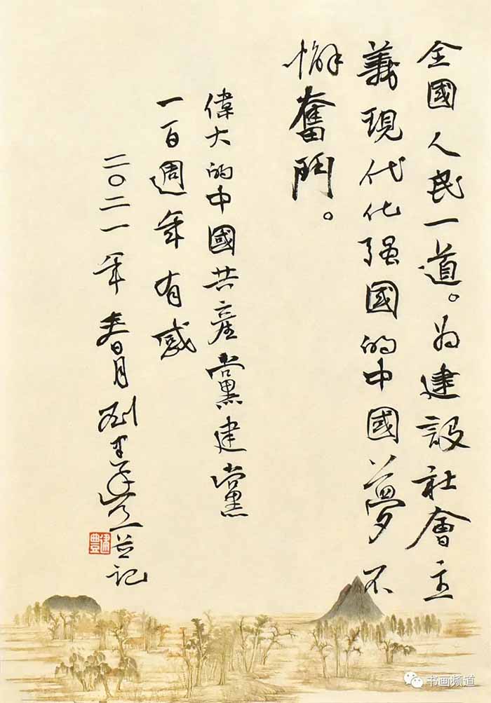 伟大的中国共产党建党一百周年有感。二0二一年春月,刘建丰并记。