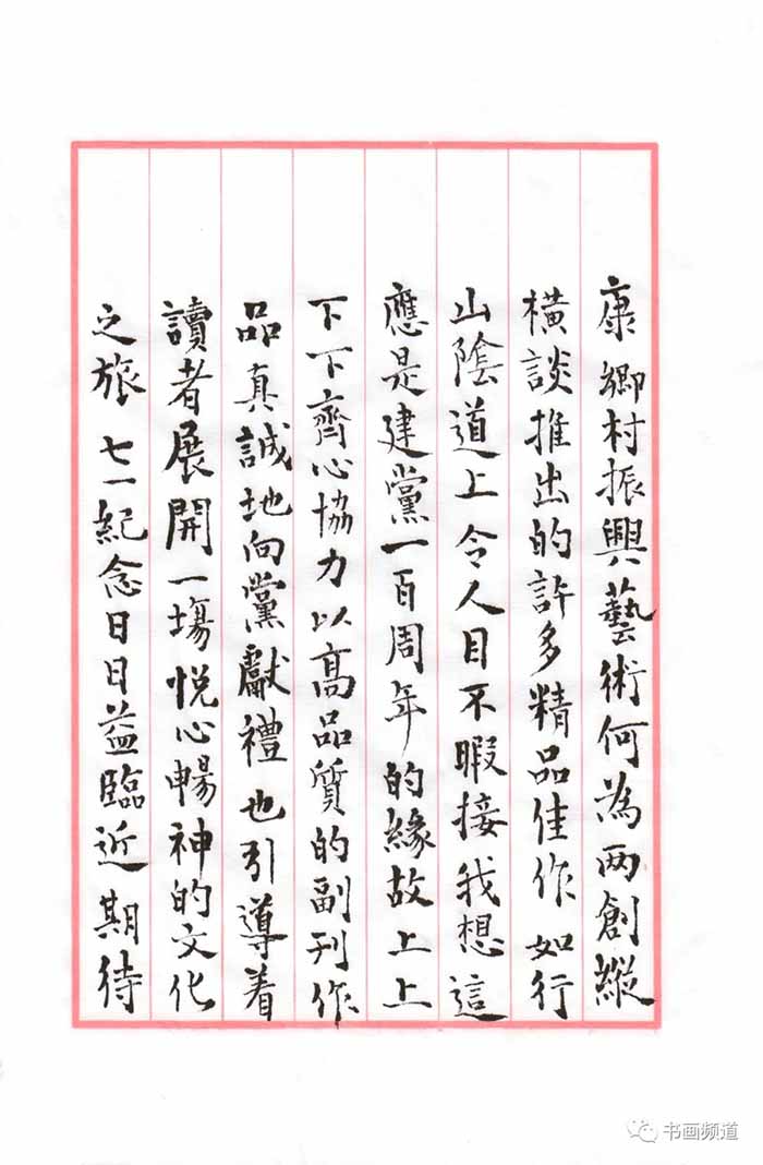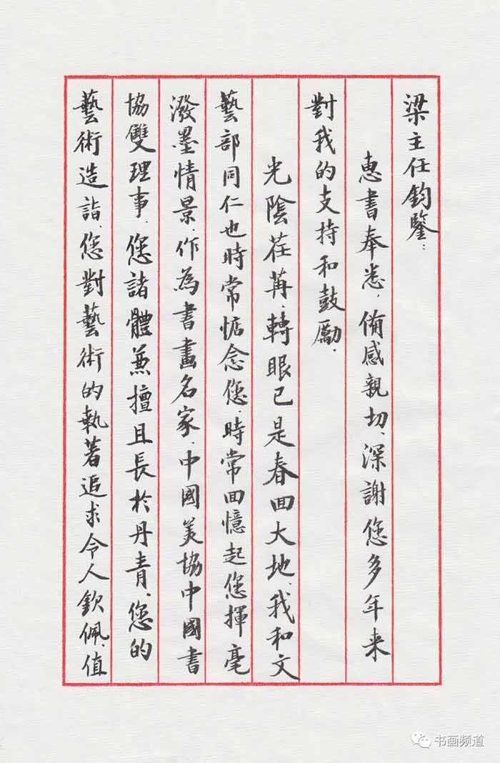 来信收悉,信中所谈今年书法创作投稿之事,我想给你提两点建议。首先,在内容的选择上,要考虑今年建党一百周年这一主题来创作,其原因为庆祝中国共产党百年华诞是今年各项活动的主题,具有鲜明的时代性,而且在内容的选择上也比较宽泛。比如说,老一代无产阶级革命家的诗词、文章,以及习近平总书记的讲话用典等,通过书写这些内容来反映在中国共产党的领导下所走过的光(辉)历程和取得的成就。当然书写古今健康的诗词文赋等内容也是一种选择,但在今年这个特殊的年份强调作品的思想性、政治性并将艺术创作相结合应当是最恰当的形式,因此希望你重视这一方面。