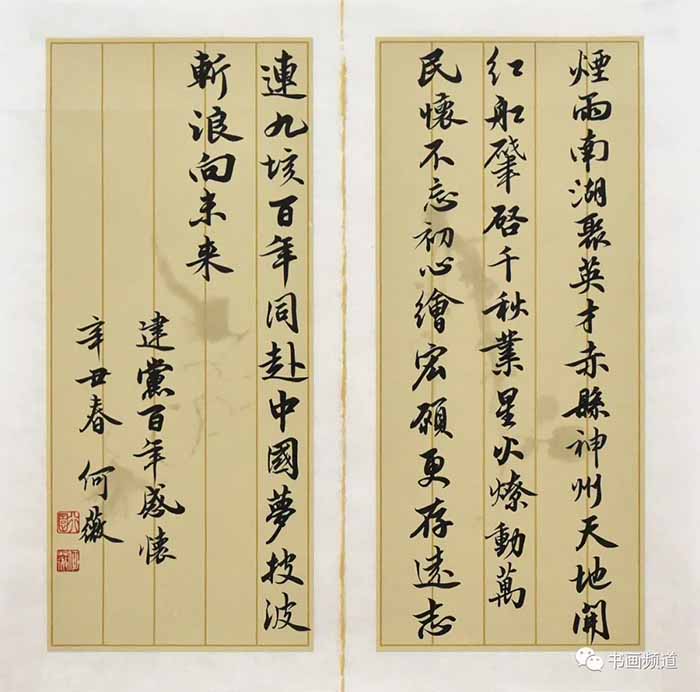建党百年感怀。辛丑春,何薇。