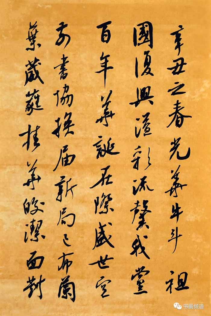 辛丑之春,光华牛斗,祖国复兴,溢彩流馨。我党百年华诞在际,盛世空前。书协换届新局已布。兰叶葳蕤,桂华皎洁。面对新程待启,更感使命担当!遥思成长之路,沐党恩,蒙党教,受党训,得党恩,无限感慨!余自咿呀学语之时,听十里蛙鸣,沐百尺清风;蹒跚学步之时,得严父启蒙,临池学书,执笔若椽。后师从成文先生,笔墨示范,教诲谆谆。习书与年龄并长,悟性顿开;书艺与休养渐进,获益匪浅。获中国书协“双六届”最高奖等,点滴进步,乃觉行万里路方知天下之大,读万卷书始晓学海之渊。上贤垂教,同道互益,广学多知,渐通学书之道。庭训师承,友鉴天资,深知古哲创新相辅相成。蒙组织之厚爱,促个人之进步,翘首前行,催人奋进!欣逢盛世,所爱遇沃土,才华润雨露,吾辈幸矣!国为民之家,家为国之佑,个人乃沧海一粟,惟置身于家国之海,方有不竭之源。每每进步,尤思党恩,如涓流入海,葵花向阳,矢向不移,初心永驻。两会闭幕,春风尽吹,文艺百花园万里蓝天,风鹏正举。举国上下,齐心致力民族复兴,百年梦圆,倍感任重道远。吾将借此契机,再踏征程,坚持以人民为中心创作导向,为时代讴歌,为人民书写,忠诚不渝报党恩,正可谓:入海涓流涌浪潮,竹芽拨(拔)节颂今朝。葵花向日情无改,万里征程任路遥。