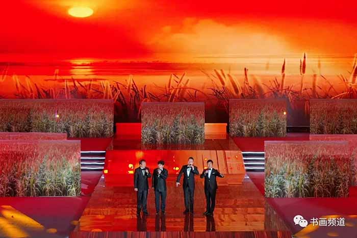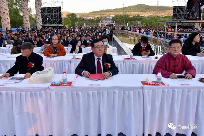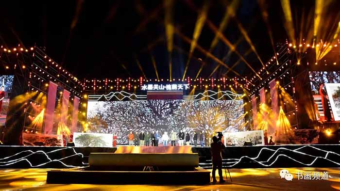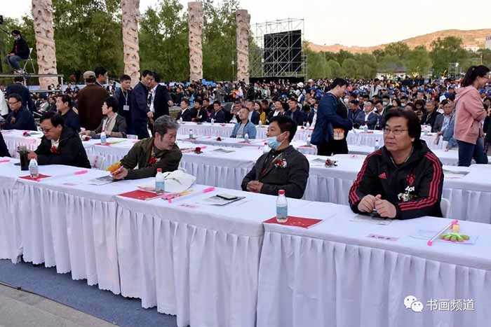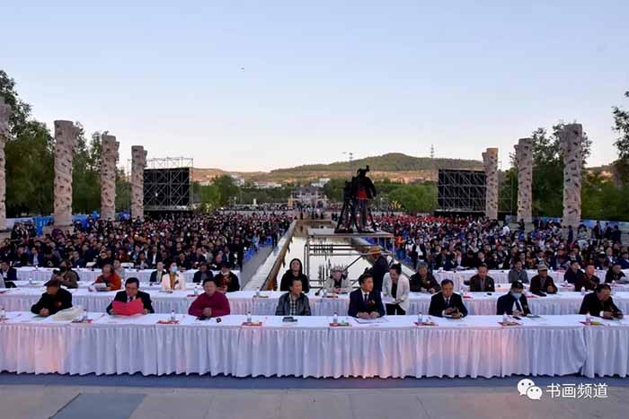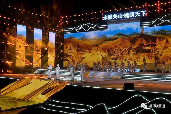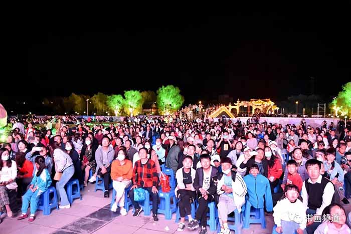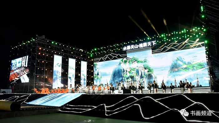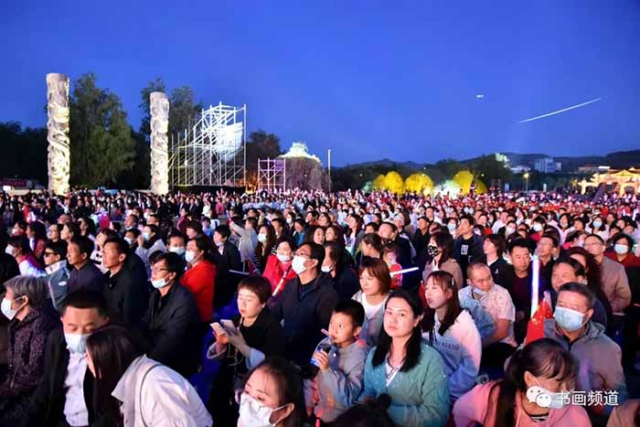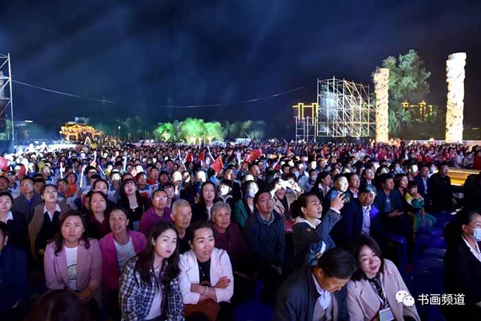 中国美术家协会副主席杨晓阳,中国国家画院原副院长曾来德,中国书法家协会顾问翟万益,中国画学会理事、北京观复美术院院长裘缉木,中国书法家协会第五、六、七届理事、楷书专业委员会副主任杨明臣,中国书法家协会理事、中央国家机关书画协会副主席张志和,甘肃省文联副主席、甘肃省美术家协会主席马刚,中国美术家协会理事、安徽省美术家协会主席杨国新,中国美术家协会理事、山西省美术家协会主席王学辉,中国美术家协会理事、青海省美术家协会名誉主席王利峰,中国美术家协会理事、贵州省美术家协会主席谌宏微,中国美术家协会理事、河北省美术家协会主席祁海峰,中国美术家协会会员、清华大学美术学院教授戴顺智,中国国家画院书法篆刻院执行院长、中国国家画院研究员李晓军,广西书法家协会主席郑军健,中国书法家协会理事、甘肃省书法家协会主席安文丽,中国美术家协会理事张清智,中国国家画院专业画家胡宝利,中国美术家协会理事、中国国家博物馆书画研究创作中心负责人石峰,中国山水画研究院院长陈克永,中国美术家协会理事、中国山水画研究院副院长段铁,厦门市美术家协会副主席、国家一级美术师赵星,中国书法家协会理事、广东省书法家协会副主席纪光明,中国书法家协会理事、草书委员会委员王厚祥,中国书法家协会楷书专业委员会委员李明,中国美术家协会会员、北京美术家协会会副秘书长兼展览部主任张亮京,山东省美术家协会顾问、山东省中国画学会副会长于新生,中国美术家协会会员、河山画会会员包信源,中国美术家协会中国重彩画研究会理事盛寿永,中国美术家协会会员、中国工笔画学会常务理事、副秘书长孙恺,中央文史馆书画院研究员、中国美术家协会会员杨若云;中共甘肃省委宣传部二级巡视员封奎海,省文联副主席王正茂;甘肃省政协副主席、平凉市委书记郭承录,市委副书记、市长王旭,市人大常委会主任马琨,市政协主席王大睿,中国围棋协会副主席兼秘书长王谊,书画频道董事局主席王平;市直属部门,各县(市、区)党政、文旅局负责人,以及现场观众万余人,共同见证了本场晚会的盛况。同时,本场晚会还通过书画频道官网、官方微信公众号、新华网、新甘肃、咪咕视频、爱奇艺、今日头条、西瓜视频、抖音、平凉日报、平凉市广播电视台、平凉文旅等线上平台进行现场直播,在线收看人数达百万人。