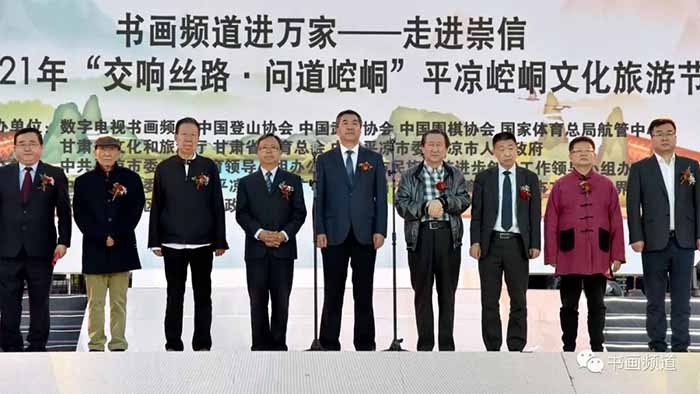 水墨关山,槐荫天下;崆峒巍峨,泾水长流。5月18日至20日,“水墨关山•槐荫天下”书画频道进万家——走进平凉崇信,暨2021年“交响丝路•问道崆峒”平凉崆峒文化旅游节盛大启幕,书画频道携手三十余位来自全国的书画艺术和表演艺术名家走进平凉崇信,通过大型文艺晚会、书画名家精品展、名家笔会、文化大讲堂、采风写生等系列主题文化活动,助力崇信当地文化和旅游品牌建设,助推崇信当地苹果种植和红牛养殖等特色产业发展,在举国上下共同庆祝建党100周年之际,为广大崇信人民送来了精彩纷呈的饕餮文化盛宴。