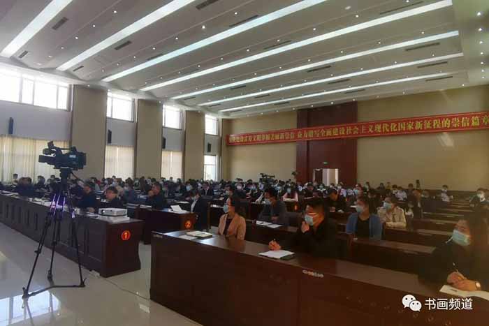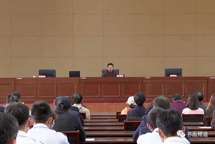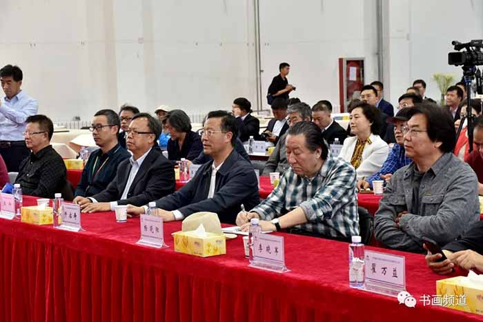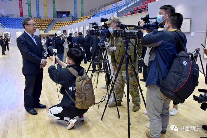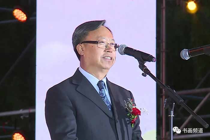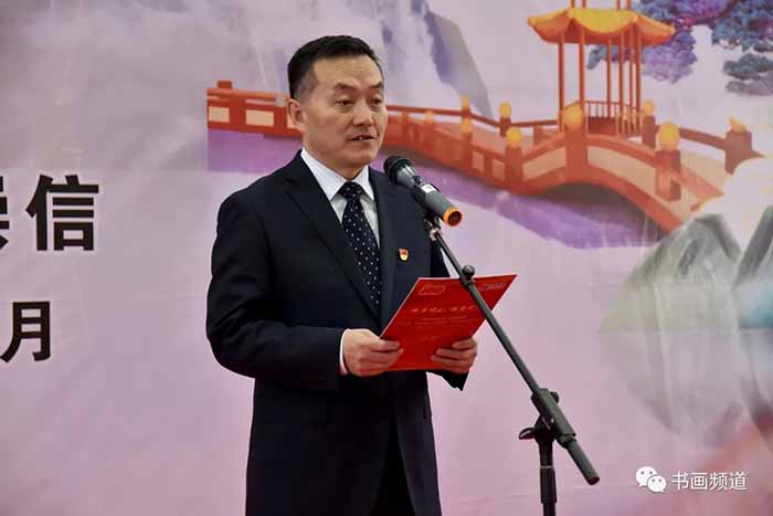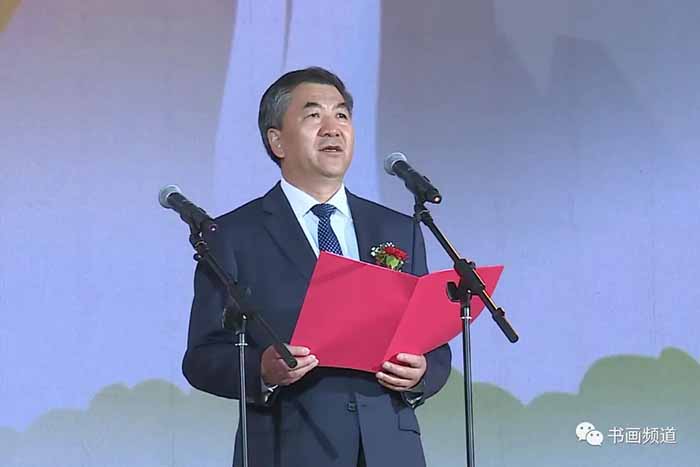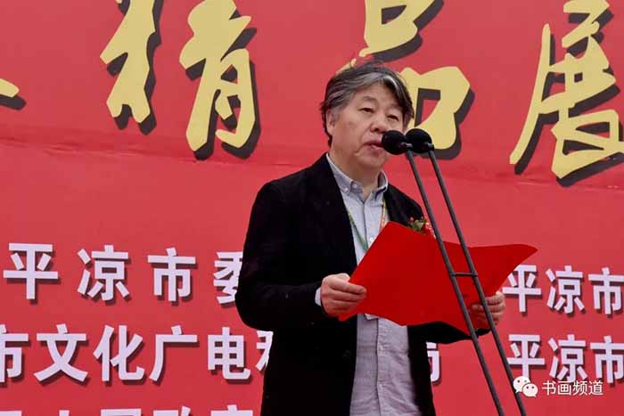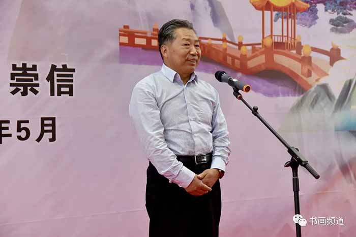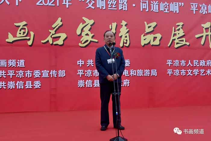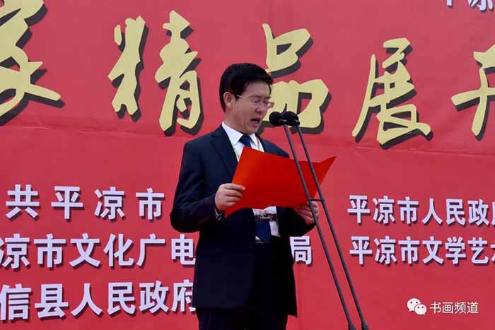 作为书画频道进万家——走进平凉崇信系列文化活动之一,5月19日,中国书画名家精品展在崇信体育馆隆重开幕。仪式上,崇信县委书记张拴会,中国国家画院原副院长曾来德,甘肃省美术家协会主席马刚先后致辞,平凉市政协主席王大睿宣布展览开幕。