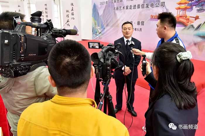 在崇信电厂的会议大厅,艺术家们还与干部职工进行了深入交流,并为电厂劳模和优秀党员代表送去精美的书画作品。