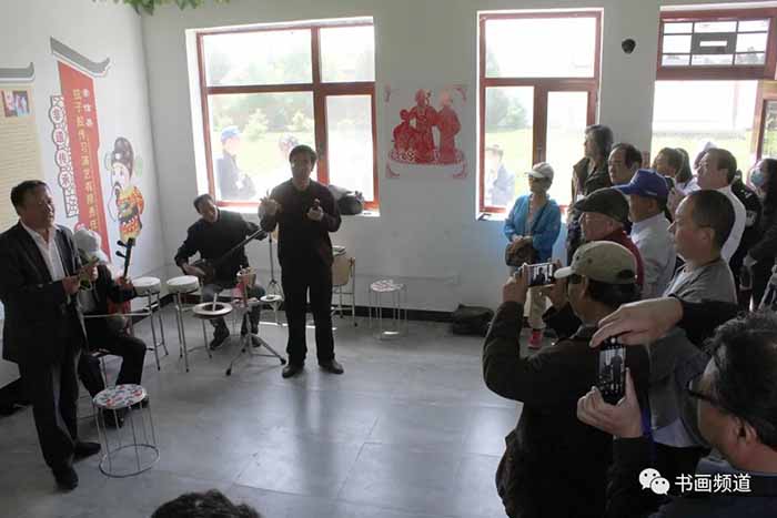 作为当地乡村振兴示范村,在崇信柏树镇木家坡村,艺术家们参观了村文化馆,亲眼见证了当地村民对文化艺术的崇敬与热爱。书画频道为当地村民送去了教学光盘等礼物,在挥毫泼墨中,艺术家们切身感受到当地村民在美丽乡村建设全面提速的进程中获得的幸福与满足。