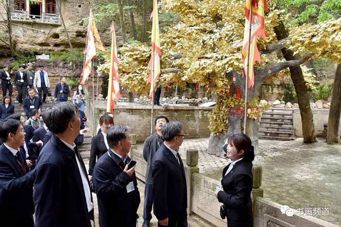 为了更好地了解当地风土人情,艺术家们还走进位于芮河北岸的崇信龙泉寺采风写生,用手中的毛笔抒写心中的龙泉圣境,感受大美崇信的自然魅力和悠久的历史底蕴。在采风活动进行期间,艺术家及书画频道还向景区赠送了书画艺术作品。