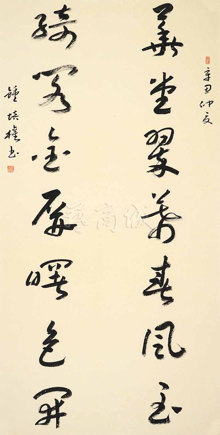 S05728-钟培权-华堂徻儈翠幕春风至绮阁金屏曙色开-134cm×69cm