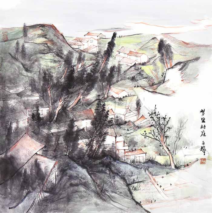 宋代文人苏轼在《和子由论书》中形容刚柔相济的书风说:“端庄杂流丽,刚健含婀娜。”中国当代女画家左文辉的山水画风格一如其人:刚健端庄,温润流丽。这种风格主要体现于西北化的江南山水,她以个性化的笔墨语言和意象化的设色方法创造了属于自己独特的艺术之美。