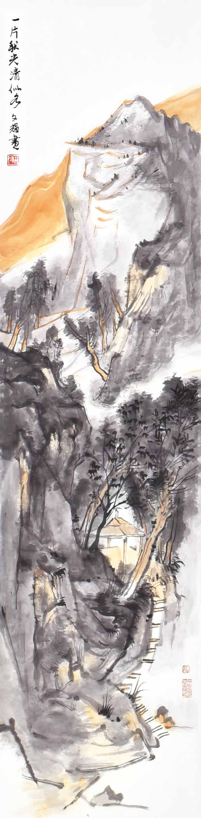 H03974-左文辉-一片秋光清似水-136cm×34cm