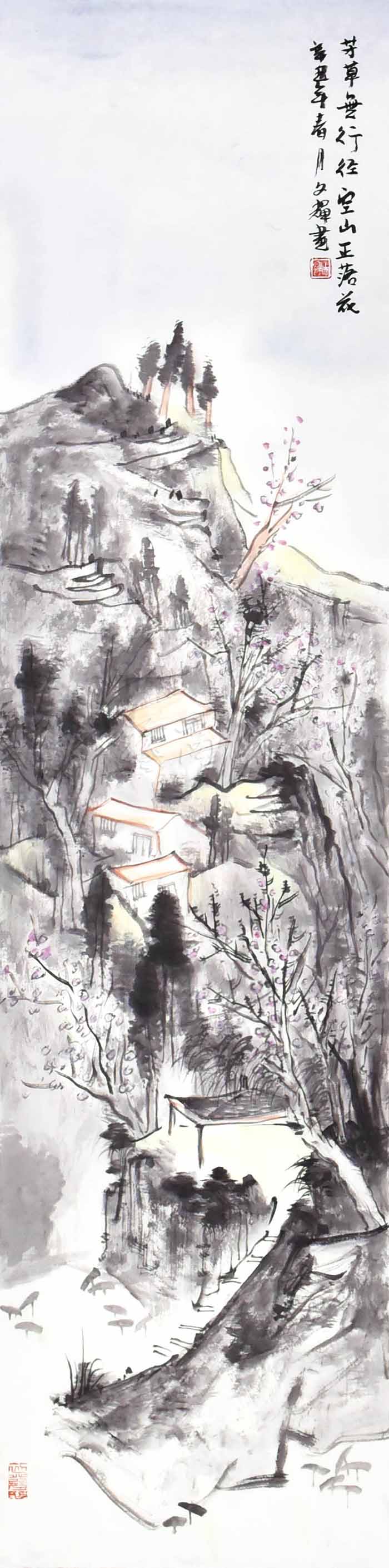 H03975-左文辉-芳草无行茎,空山正落花-136cm×34cm