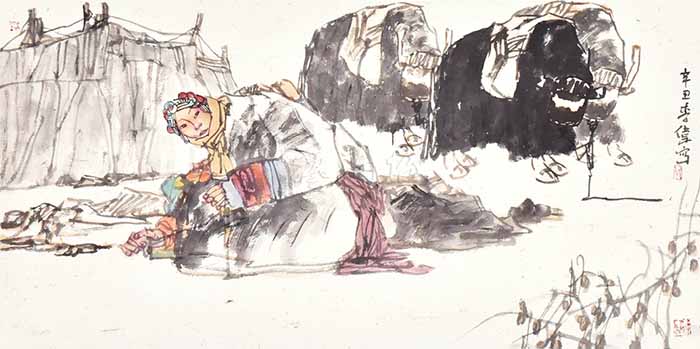 “他山之石,可以攻玉。”李伟的藏族人物画立足陇原大地,展现高原藏族人文精神和新时代下藏族同胞的生活面貌,笔墨之中充满着热情和真诚。