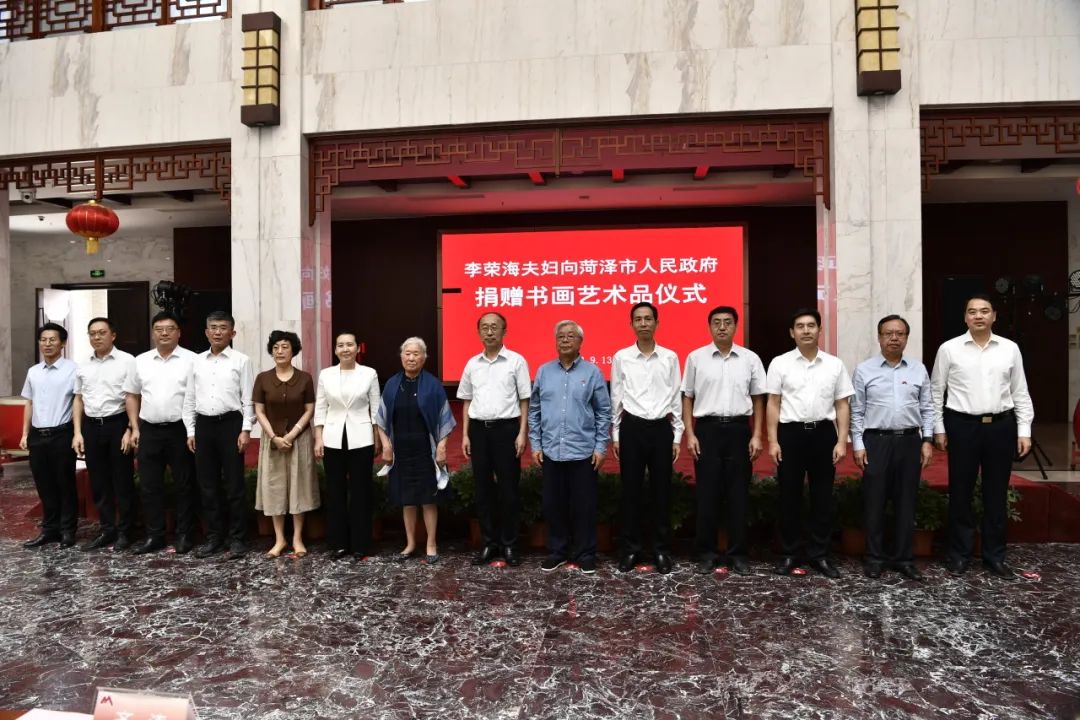 9月13日,李荣海夫妇向菏泽市人民政府捐赠书画艺术品仪式暨“回报家乡人民•李荣海夫妇捐赠书画作品大型回报展”开幕式在菏泽市李荣海美术馆举行。这是继李荣海先生捐赠美术馆后的又一义举,不仅展现了这位艺术家扎根故土的家国情怀和时代担当,更对推动菏泽文化建设和传统书画艺术的传承弘扬具有非常重要的意义,得到了当地党政领导、全国艺术界人士、院校师生、新闻媒体的广泛关注和高度评价。