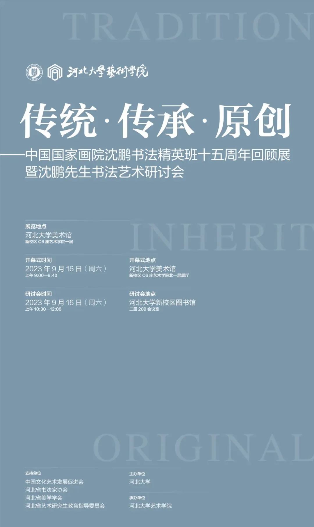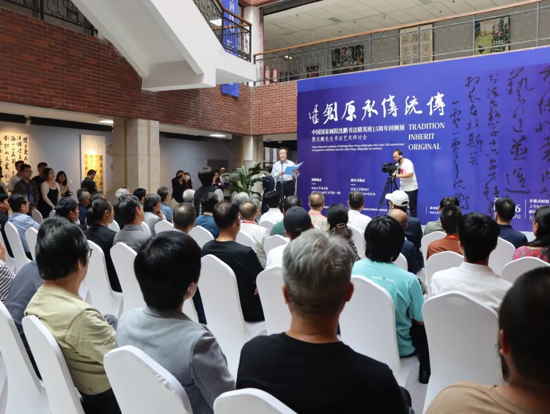 9月16日,传统·传承·原创——中国国家画院沈鹏书法精英班15周年回顾展开幕式暨沈鹏书法艺术研讨会在河北大学艺术学院举办。