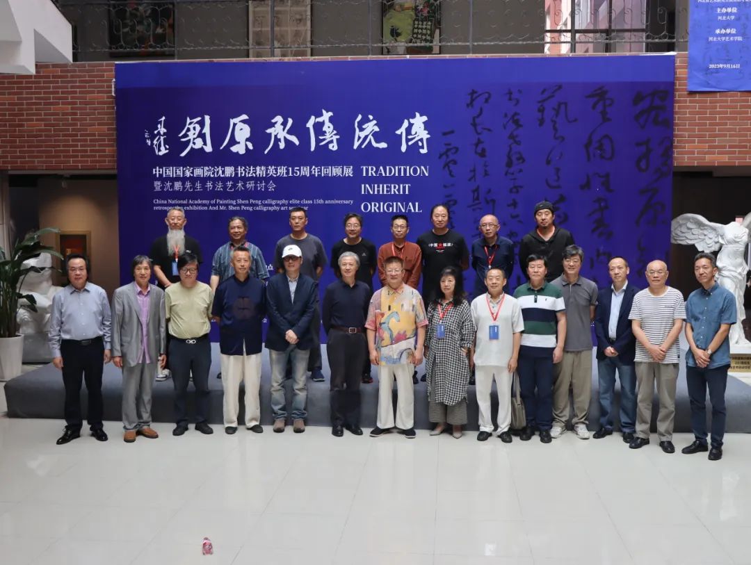 2007年9月—2009年6月,中国国家画院成功举办“沈鹏书法精英班”,选拔的40位精英班成员被称为中国书法的“梦之队”,导师沈鹏提出了“弘扬原创、尊重个性、书内书外、艺道并进”的16字教学方针,对当代中国书法发展起到了积极的推动作用。精英班成员15年后在河北大学再聚首,在美术馆展出80件精品力作,并结合展览进行观摩研讨,既是对沈鹏先生的深切缅怀,也是为学习贯彻党的二十大精神,以笔墨真情描绘中国式现代化场景的一次践行。