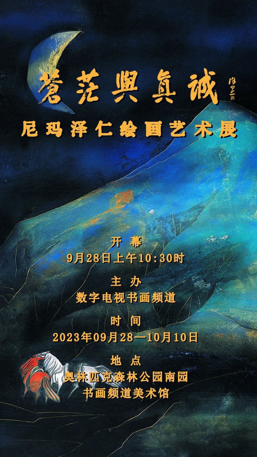地铁八号线森林公园南门B口出,进入奥林匹克森林公园南门,右拐沿红色跑道或路标找到 “书画频道”或“森林艺术中心”(步行15-20分钟)。
