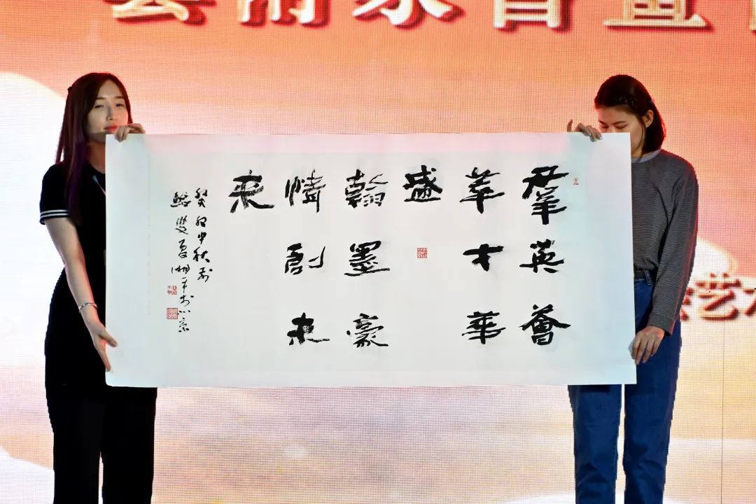 著名书法家夏湘平带来一幅精彩的书法作品,上书“群英荟萃才华盛 翰墨豪情创未来”,在意趣生动的隶韵书法间,向观众传递了老一辈书家对当代书画发展的关心。