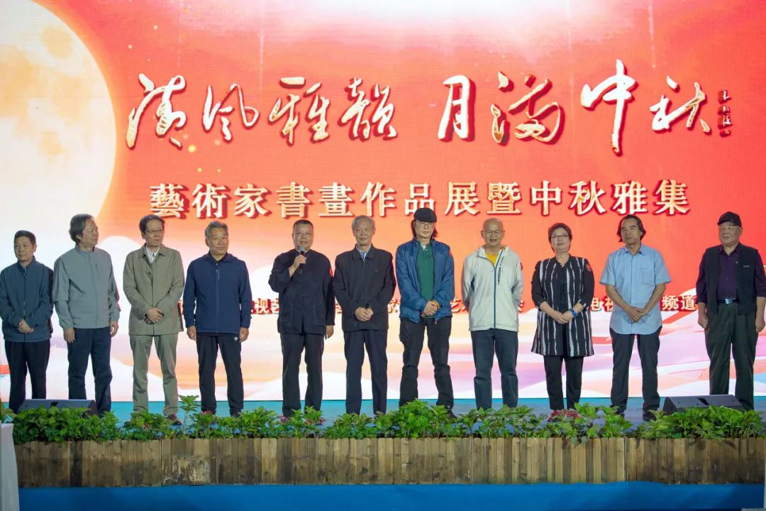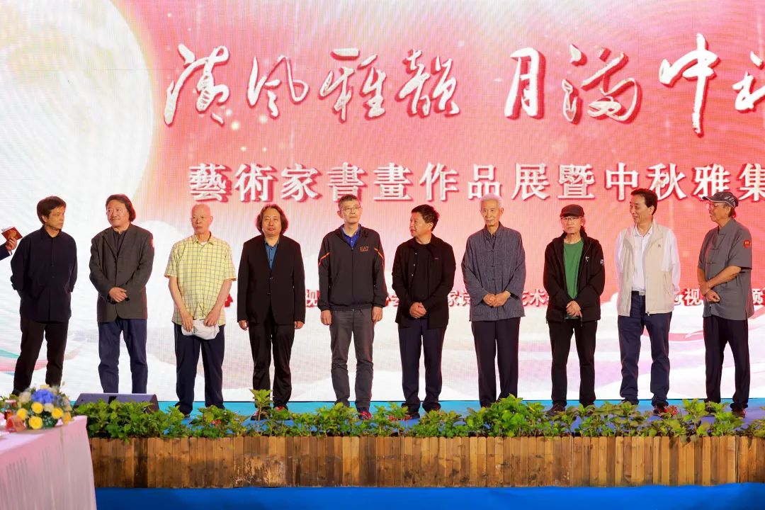 陶醉在如诗如画如歌的月色下,参展艺术家石小满、韩月乔、王伯昭、陶贤锋、梁丽、战卫华、张晶晶、洋光登台向全国人民送上真挚祝福。
