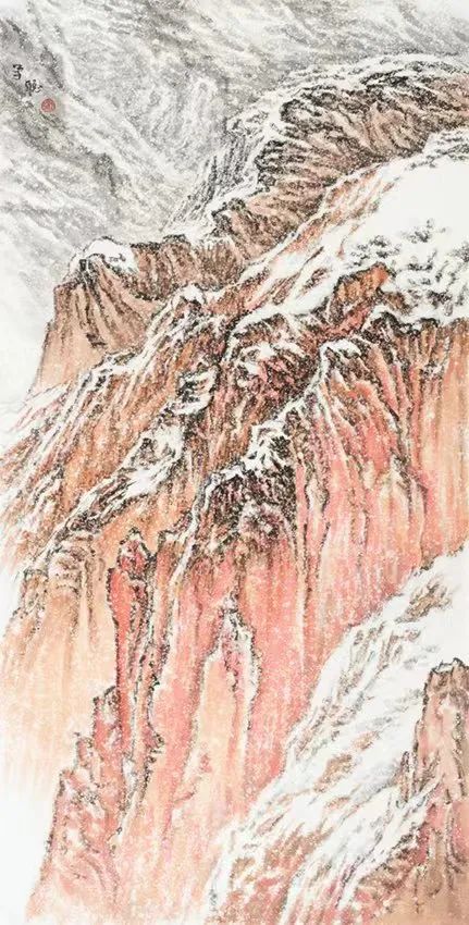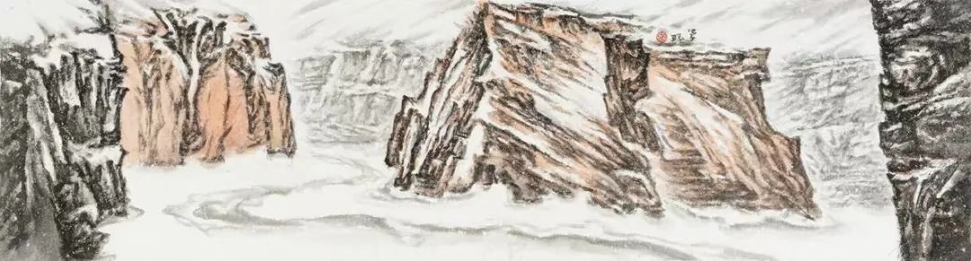 张学聪怀揣着对祖国对家乡的无限热爱,多年来一直致力于黄土高原、黄河雪景山水的探索与实践,他把黄河母亲的宽厚无私与落雪无声的奉献精神有机的结合起来,表现出一种超然的精神境界,风格独俱。他坚持“骨法用笔,以线造型的中国画艺术特色,灵活运用不同的线性以表达不同的物象和意境。
