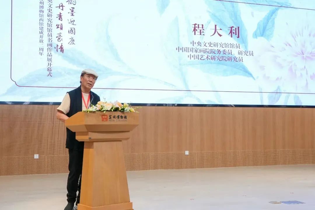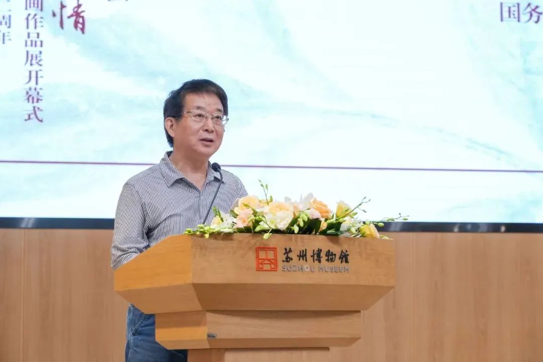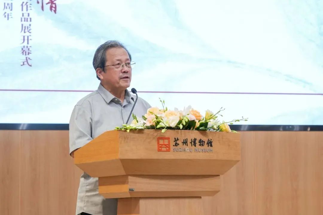 9月25日,“翰墨迎国庆 丹青颂豪情——中央文史研究馆馆员书画作品展”在苏州博物馆西馆开幕。开幕式上,中央文史研究馆副馆长冯远、国务院参事室原副主任方宁分别致辞。中央文史研究馆馆员程大利、江苏省文联副主任徐惠泉则代表中央文史研究馆馆员和与会专家发言。