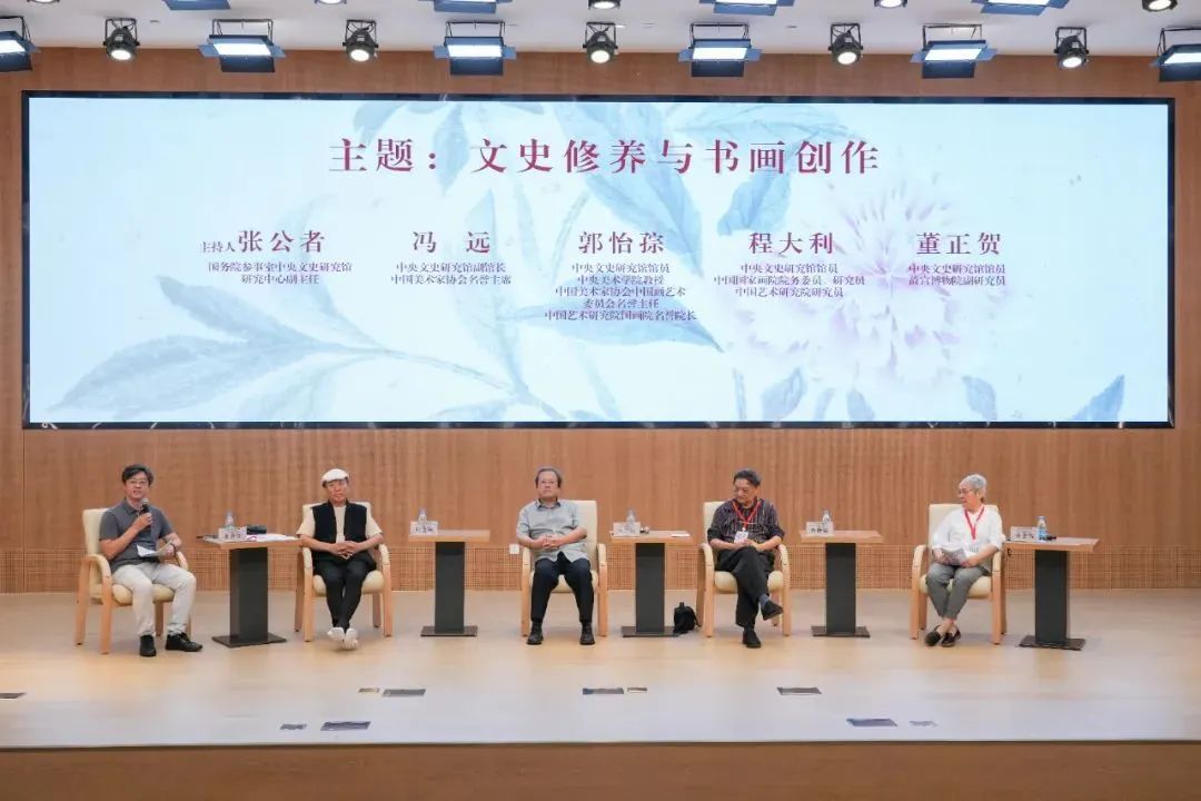 展览期间还举行了展览专题学术对话活动。对话由国务院参事室中央文史研究馆研究中心副主任张公者担任主持。中央文史研究馆副馆长冯远、馆员郭怡孮、程大利、董正贺以及与会专家以“文史修养与书画创作”和“中国书画的当代价值”为主题进行对话交流,对新时代历史方位下中国书画艺术的创作和研究,功能定位和发展方向等方面提出了不少有价值的意见建议。