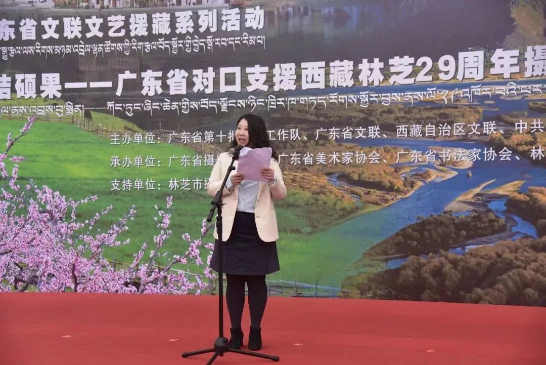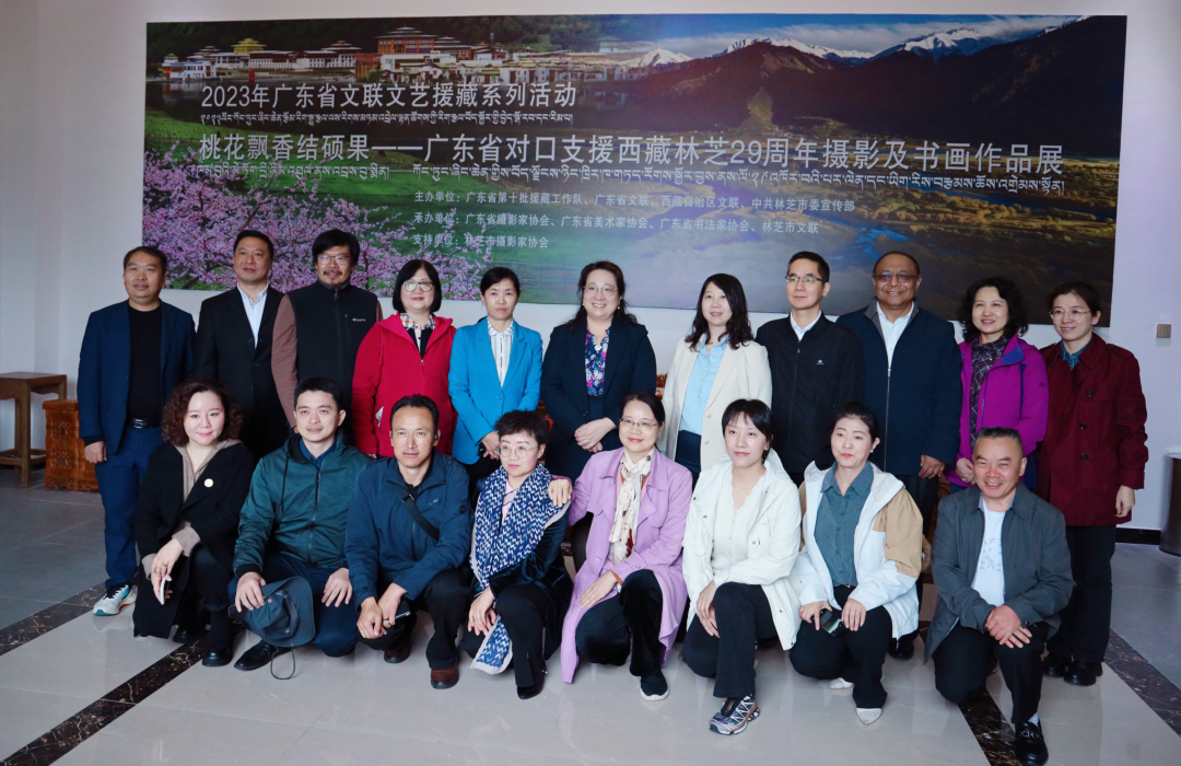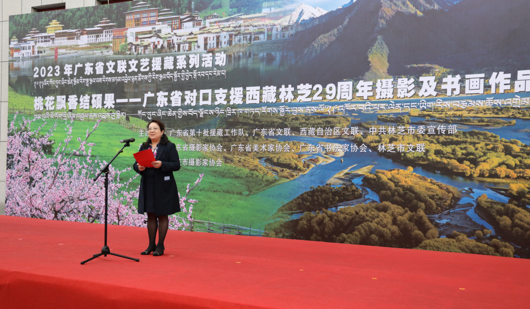 9月25日,由广东省第十批援藏工作队、西藏自治区文联、广东省文联、中共林芝市委宣传部共同主办的“桃花飘香结硕果——广东省对口支援西藏林芝29周年摄影及书画作品展”在西藏林芝市美术馆正式开展。广东省文联党组成员、一级巡视员周华,西藏自治区文联副主席候选人邹佳默,林芝市委常委、宣传部部长邓晓红,林芝市委办常务副秘书长、广东省第十批援藏工作队副领队邓钢,广东省文联组联部主任朱琪,中山市文联党组书记、主席陈江梅及广东省第十批援藏工作队部分队员,林芝市相关单位负责同志,广东省文联有关部室、协会负责人及干部,粤藏两地的艺术家100多人参加了开幕式。林芝市委宣传部常务副部长、市文联主席扎西洛布主持开展仪式。