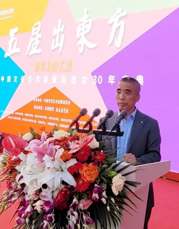 中国美术家协会主席范迪安致辞并宣布《五星出东方》国际美术大展开幕。作为中国文化艺术发展促进会30周年庆典活动系列中最重要的一环,“《五星出东方》国际美术大展荟聚了包括中国画、油画、版画、漆画、雕塑、装置等14个门类艺术作品3000余件(幅),代表了当代中国和世界艺术的至高水准,展现出“各美其美、美美与共”的和美境界。