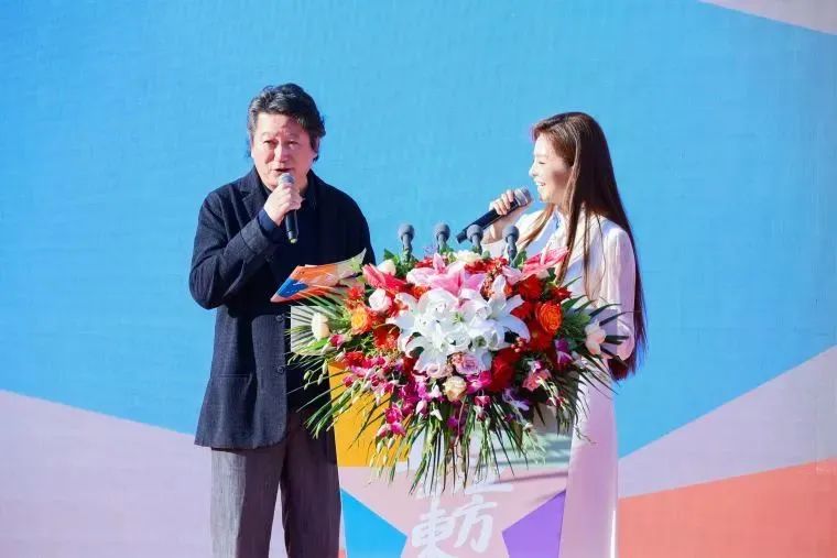 随后,中国文化艺术发展促进会副主席张江舟和中央电视台主持人朱迅,以轻松的风格主持了活动下半场,《五星出东方》国际美术大展暨中国文化艺术发展促进会三十年庆典活动的开幕式。
