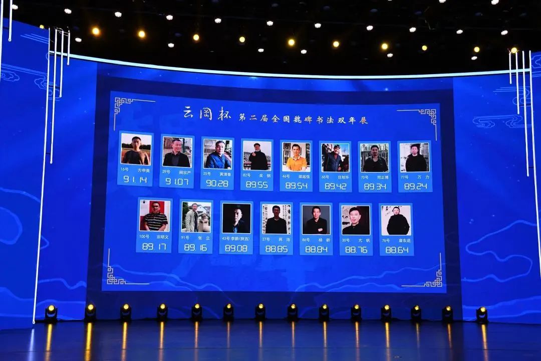 在亿万观众的热切期待中,“云冈杯•第二届全国魏碑书法双年展”赛事轮番上演。100进40,40进15,15进5……我们难忘在半决赛、决赛现场,来自全国各地的参赛选手怀着对魏碑书法艺术的执着和对魏碑故里的向往,用深厚功底书写、探索魏碑书法的奥秘,展现出自信从容的风采。五位选手历经一路拼杀、通过重重考验杀入总决赛,经过紧张激烈的书法对决,以及评委会公正、慎重的打分评审后,选手方申奥获得本届大展的特等奖,阚宗严、司正博、万力、黄清春四位选手分获一等奖。