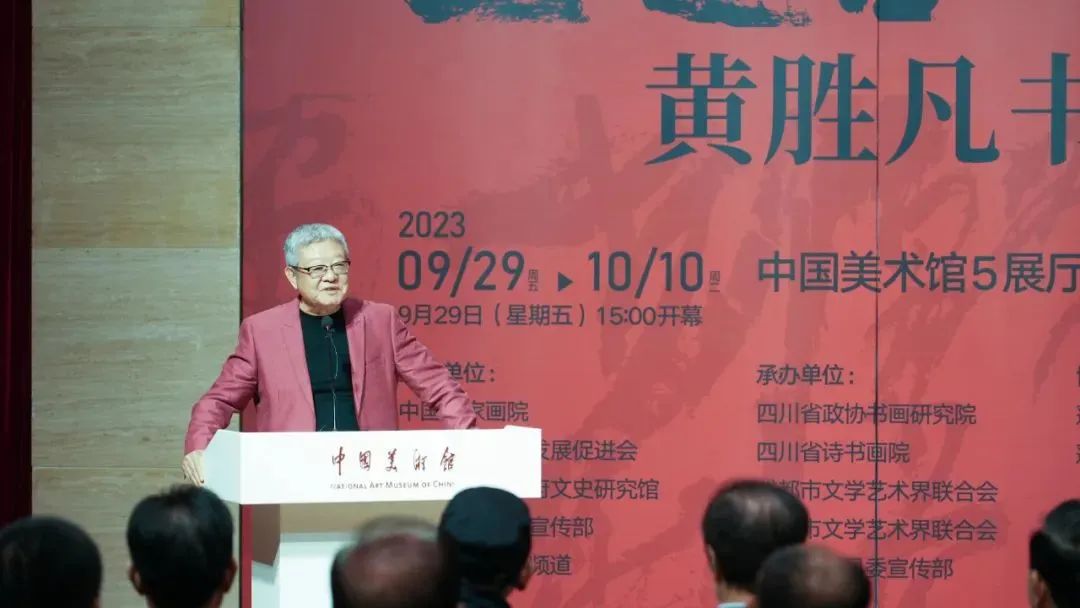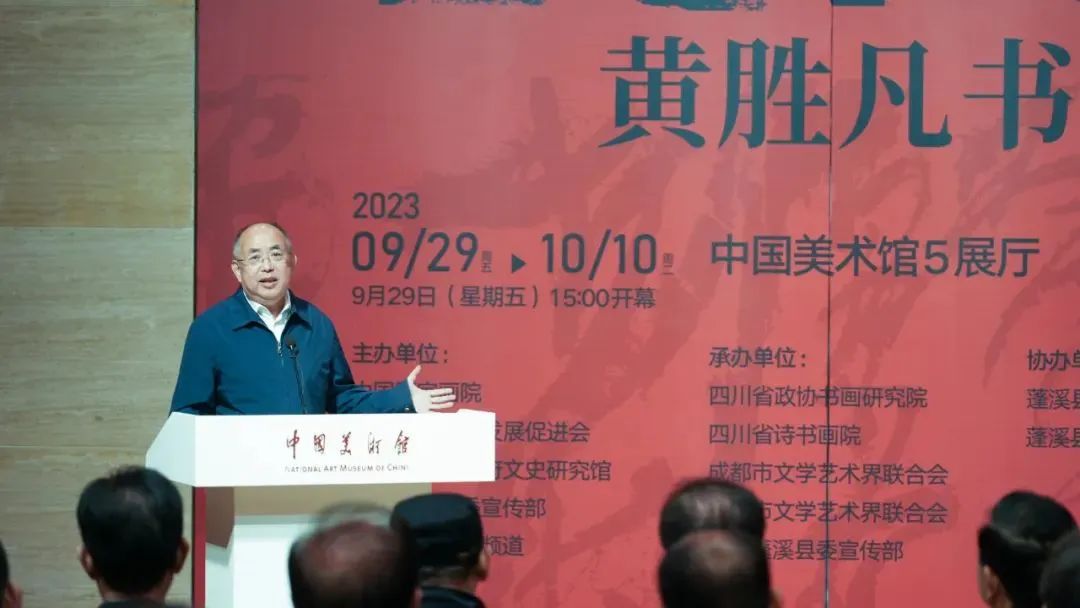 9月29日,由中国国家画院、中国文化艺术发展促进会、四川省人民政府文史研究馆、中共遂宁市委宣传部、数字电视书画频道共同主办的“画意书魂——黄胜凡书法展”在中国美术馆隆重开幕。来自文化艺术界专家学者、领导、嘉宾,以及四川省、成都市、遂宁市、蓬溪县的相关领导嘉宾,以及社会各界人士出席了展览开幕式。开幕式由中国国家画院书法篆刻所副所长洪厚甜主持。