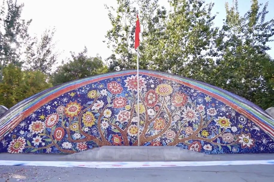2023年10月27日,在北京蒲公英中学学生锣鼓表演中,由美籍华人、著名的环境艺术家叶蕾蕾主导设计的生命树马赛克壁画在北京蒲公英中学揭牌亮相。