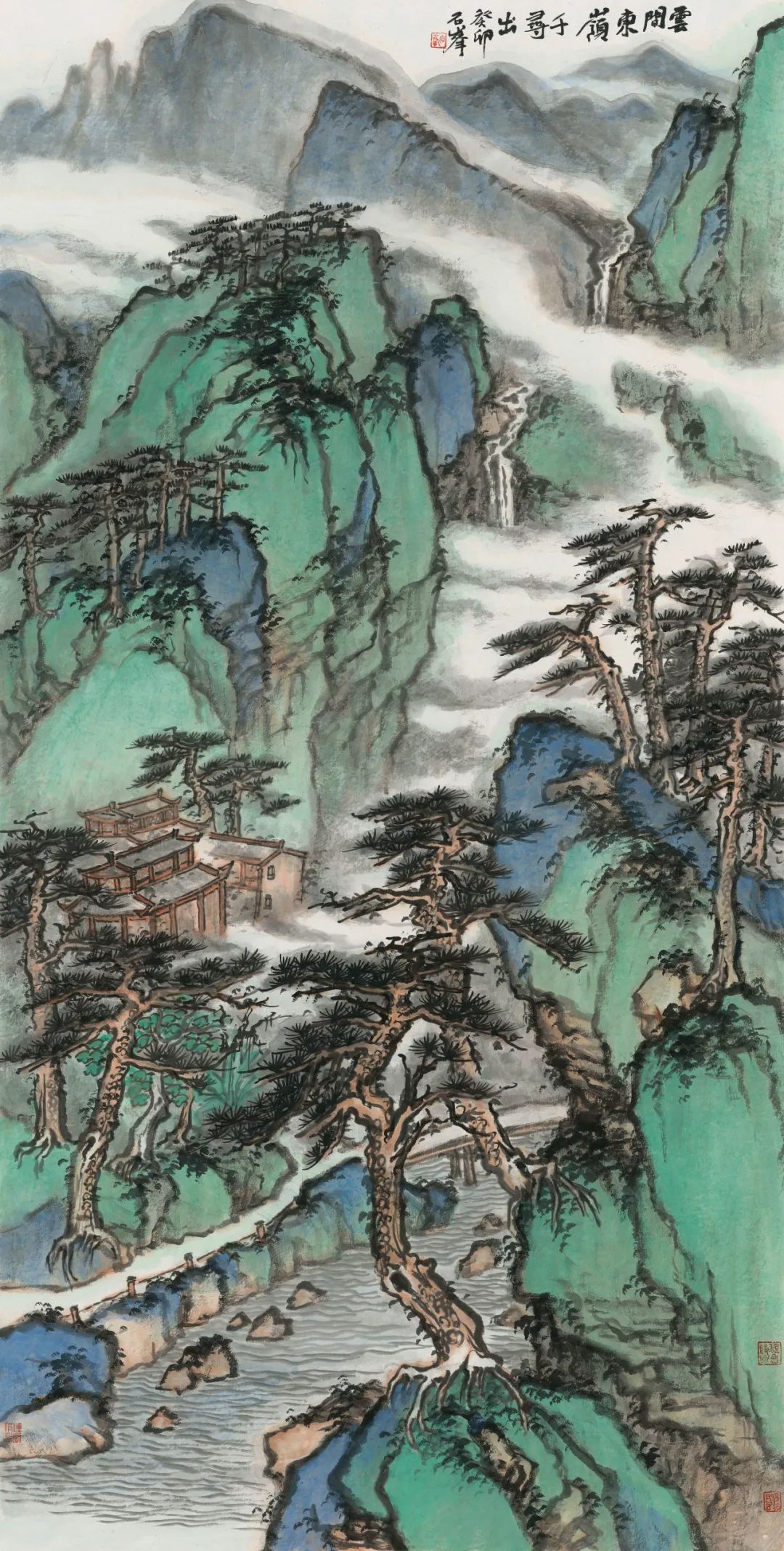 《云间东岭千寻出》 136×68cm 纸本青绿 2023年