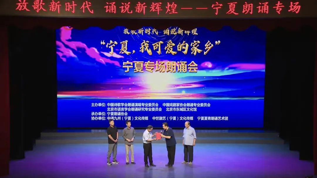 中国诗歌学会朗诵演唱专业委员会、中国戏剧家协会朗诵专业委员会、北京市语言学会朗诵研究专业委员会、北京市东城区文化馆等主办单位向來自宁夏、新疆、山东、安徽、吉林、湖北、湖南、江西的朗诵团队颁发了展演证书。