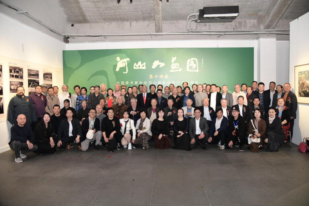 开幕式上,中国美协河山画会元老艺术家张仁芝, 中国美协河山画会首任秘书长孙克,著名美术评论家 《美术》杂志原主编王仲,中国美协河山画会副会长林容生、张龙新,画家代表、赞助方代表杨乐友,中国美协河山画会常务副会长、学术委员会主席王鲁湘,李可染画院院长、中国美协河山画会会长李庚,先后致辞,中国美协河山画会名誉会长李宝林宣布展览开幕。