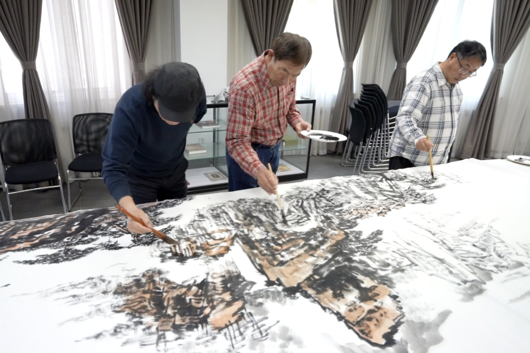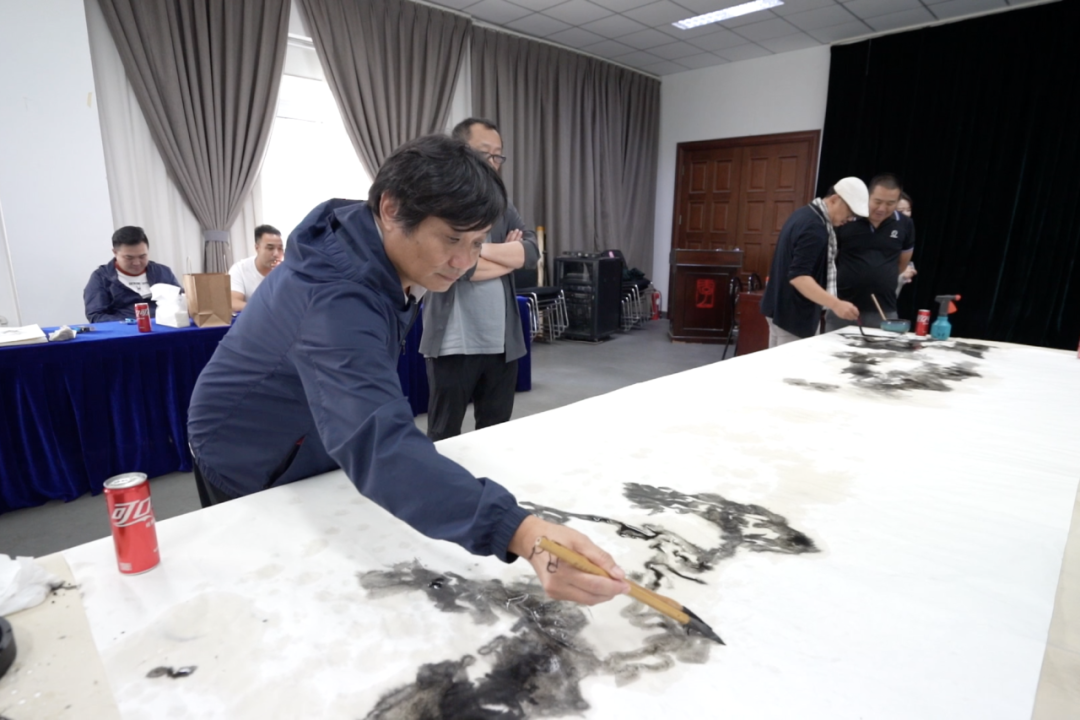 活动当天还举办了笔会交流与座谈会,来自全国各地的老、中、青三代河山画会会员们,齐聚一堂,一边进行书画创作,一边交流笔法技艺,在相互比较、学习中交流,把河山画会成立三十六周年的美好祝福,寄情于作品之中。绘就的一幅幅巨幅作品,象征着河山画会蓬勃发展的三十六年。