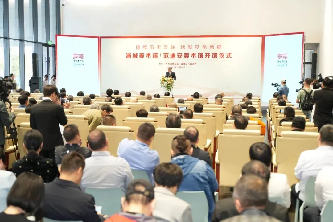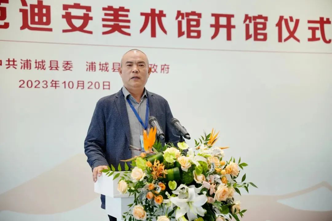 10月20日,浦城美术馆/范迪安美术馆开馆仪式在福建浦城县举行。福建省人大常委会党组副书记陈冬、副主任袁毅、原副主任叶双瑜、中国美术家协会主席范迪安、分党组书记、驻会副主席马锋辉、中央美术学院副院长吕品晶、福建农林大学原党委书记叶辉玲、南平市委书记袁超洪、市人大常委会主任罗志坚、浦城县委书记沈晓文、县长李江平以及福建省文联、省美协相关领导、文化界专家学者、特邀嘉宾、为美术馆捐赠作品的艺术家等出席了开馆仪式。