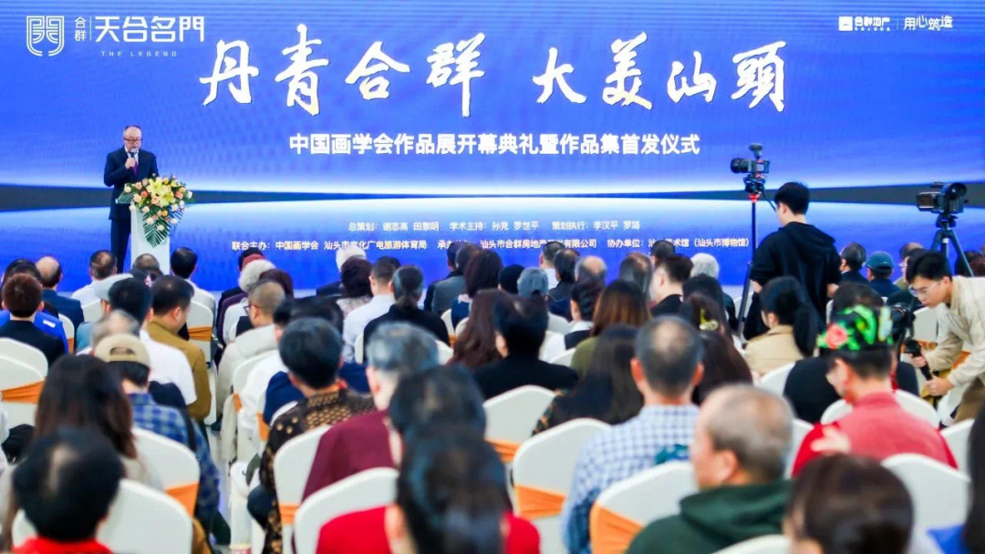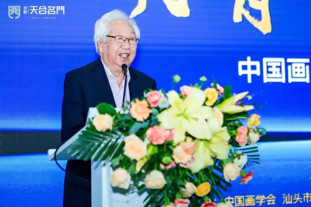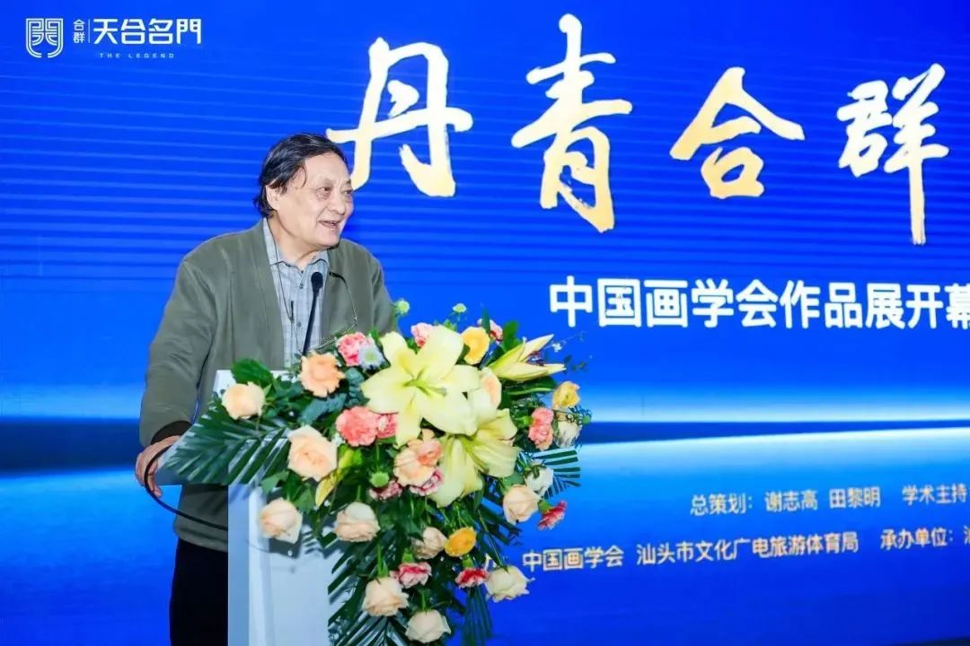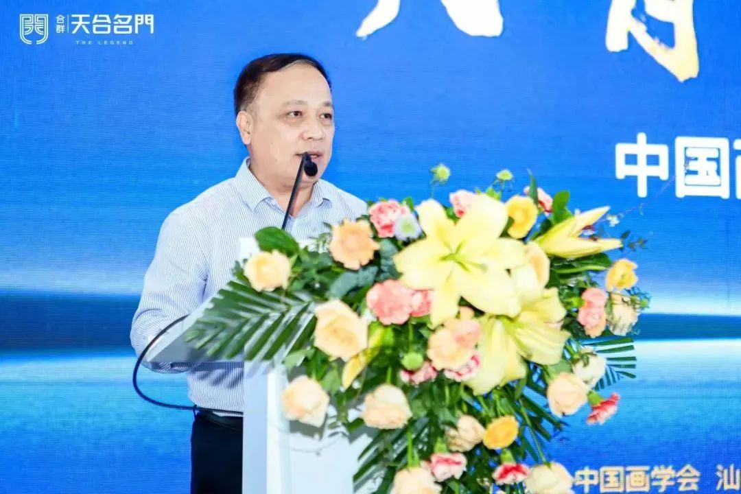 汕头市合群房地产开发有限公司董事长黄三吾,汕头市文化广电旅游体育局副局长陈挺,中国画学会会长田黎明,中国画学会创会会长郭怡孮,中国画学会创会副会长兼秘书长孙克,中国画学会副会长唐辉分别在开幕典礼上致辞。