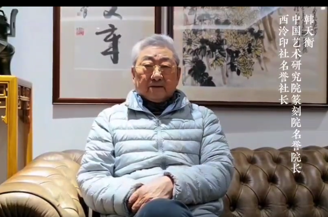 中国艺术研究院篆刻院名誉院长韩天衡通过视频的方式向本次活动发来祝贺