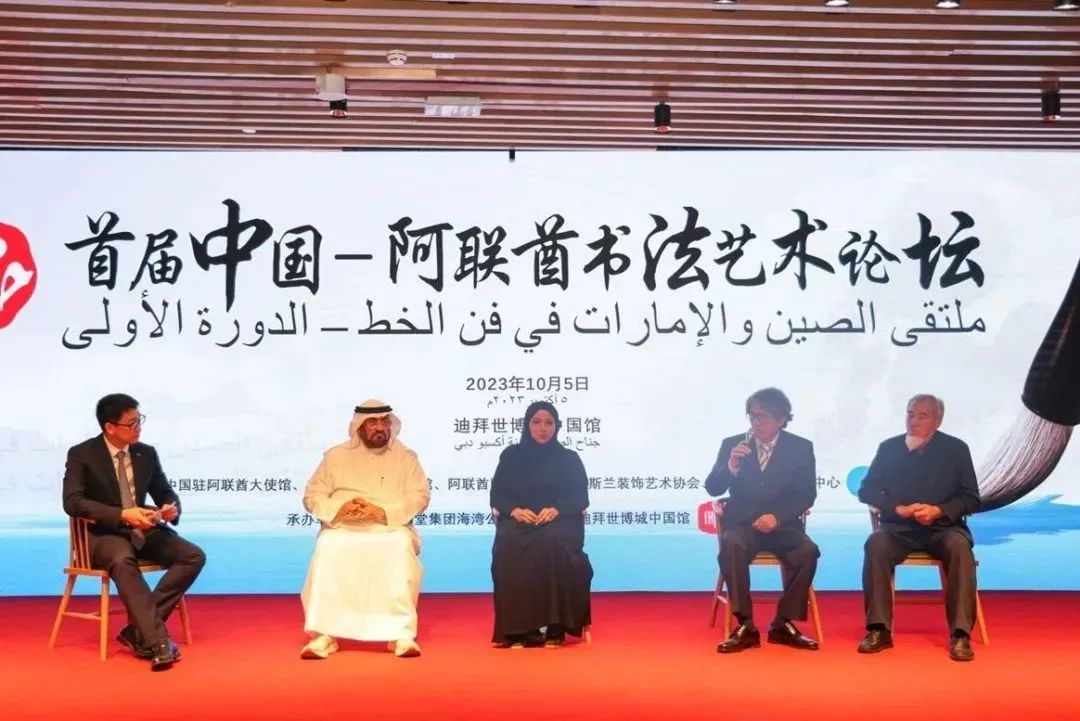 为纪念“一带一路”倡议提出十周年,喜迎第三届“一带一路”国际合作高峰论坛召开,首届中国-阿联酋书法艺术论坛在迪拜世博城中国馆举办。