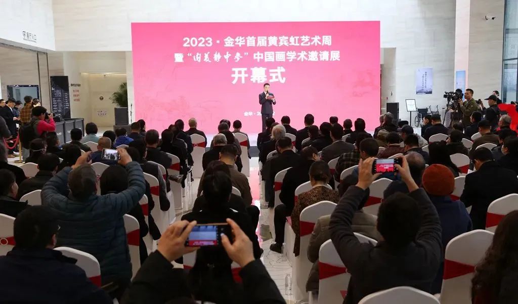 12月9日,金华首届黄宾虹艺术周暨“内美静中参”中国画学术邀请展开幕式在浙江金华城市展览馆举行。来自中国美术家协会、浙江省文联、中国美术学院、金华市政府等单位的领导嘉宾,参加了开幕式。本次艺术周由五个高水平书画展览和“黄宾虹与20世纪中国美术学术研讨会”组成。邀请全国各地书画名家与当地艺术家共同参展。对广大书画艺术家充分学习研究黄宾虹书画艺术,促进传统绘画艺术创新发展有着积极的推动作用。