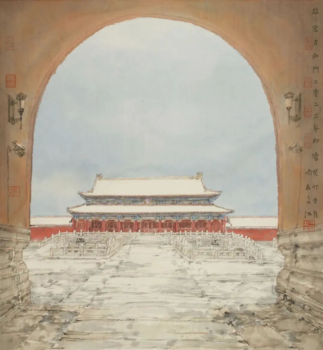 12月28日,由国家文物局、中共北京市委宣传部主办,中国国家画院、国家文物局机关服务局、北京市文物局、北京出版集团承办的“中国画 画文物——北京中轴线主题写生作品展”在中国国家画院明德楼开幕。