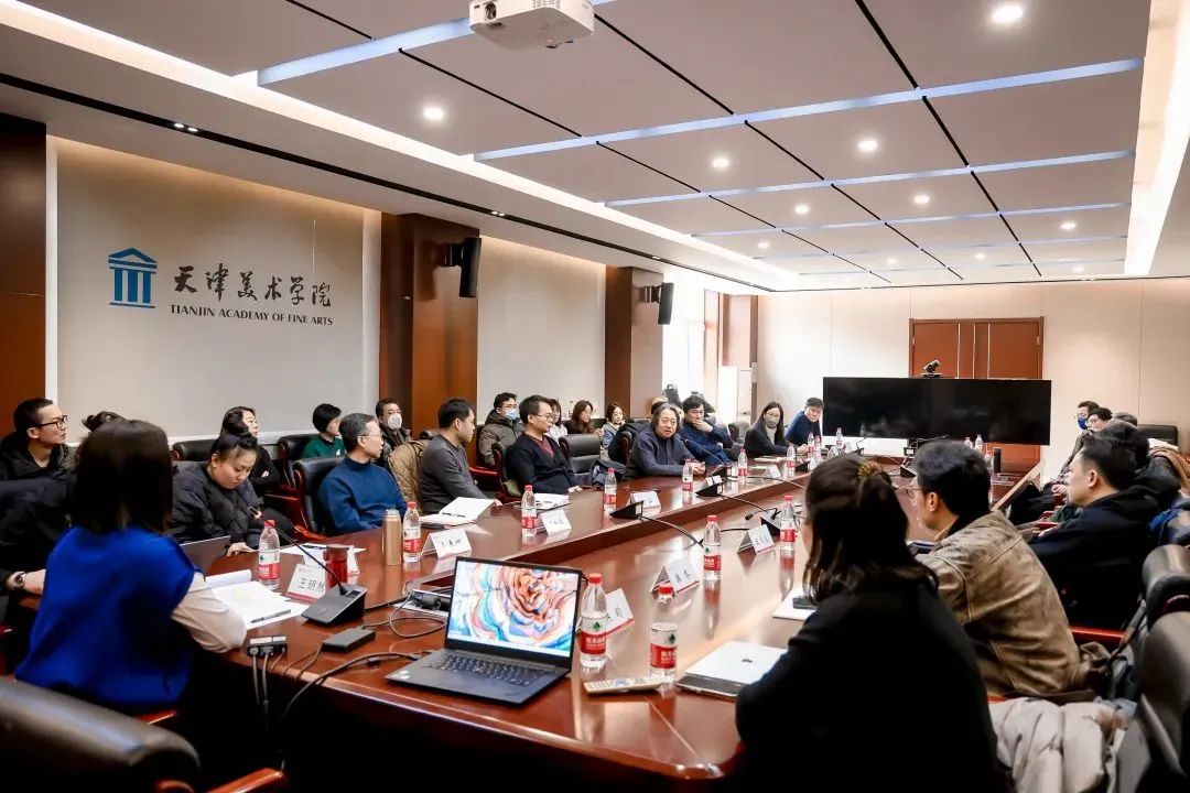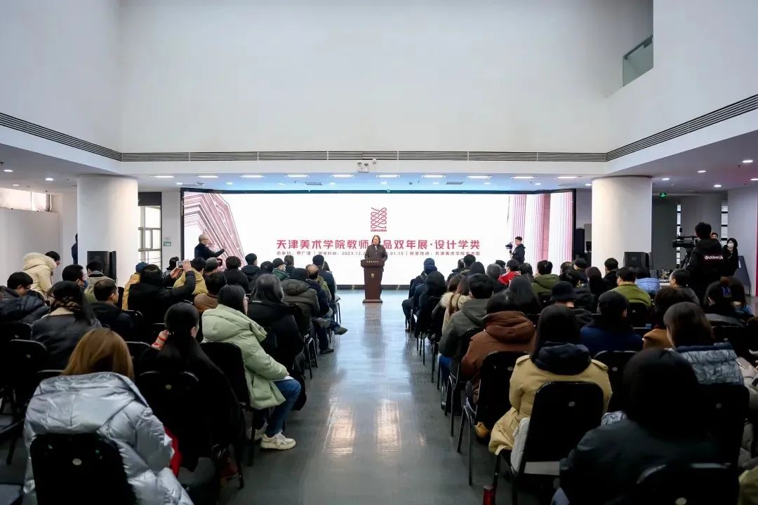 开幕式后,设计学类教师作品双年展学术交流会在天纬路校区南院小会议室召开,天津美术学院院长贾广健在交流会上讲话,30余位领导嘉宾、专家学者和教师代表在交流会上发言。天津美术学院青年教师、数字媒体艺术系副教授王玥然主持。