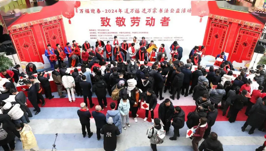 1月16日,由全国总工会指导,全国总工会宣传教育部、中国书法家协会、中国职工文化体育协会主办,中国职工书法家协会、北京字节跳动公益基金会承办的万福迎春——2024年“送万福、进万家”书法公益活动在中国职工之家举办首场示范活动——“致敬劳动者”专场。