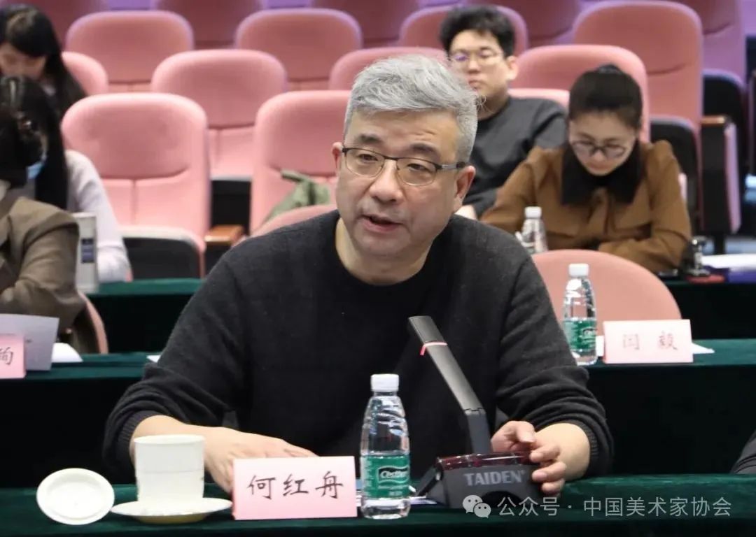 随后,中国美协副主席、油画艺委会主任、四川美院院长庞茂琨,中国美协国画艺委会主任田黎明,中国美协理论委员会主任尚辉,中国艺术研究院国画院院长牛克诚,广东省美协主席、广州美院党委书记林蓝,清华美院院长马赛等12位代表从各自的角度,就“第十四届全国美展”的组织筹备,作品创作的主题内容、艺术形式、创作方法等方面进行了交流。
