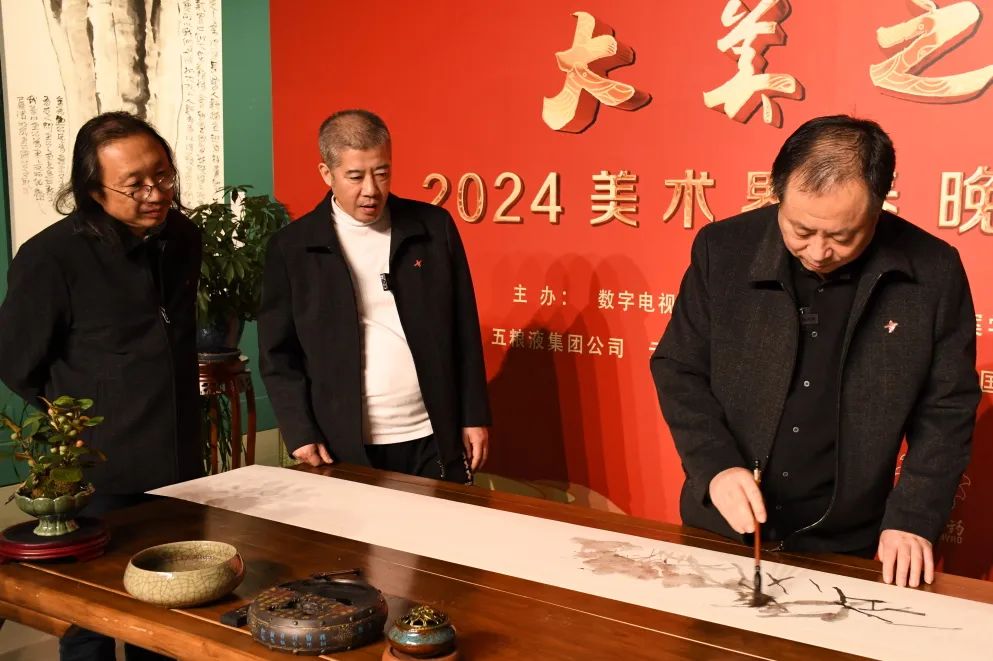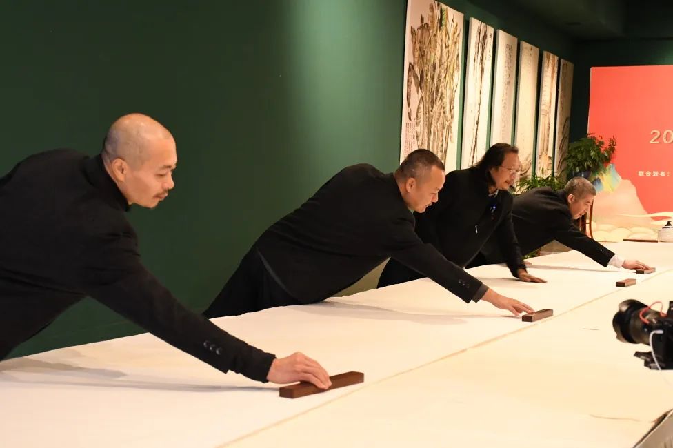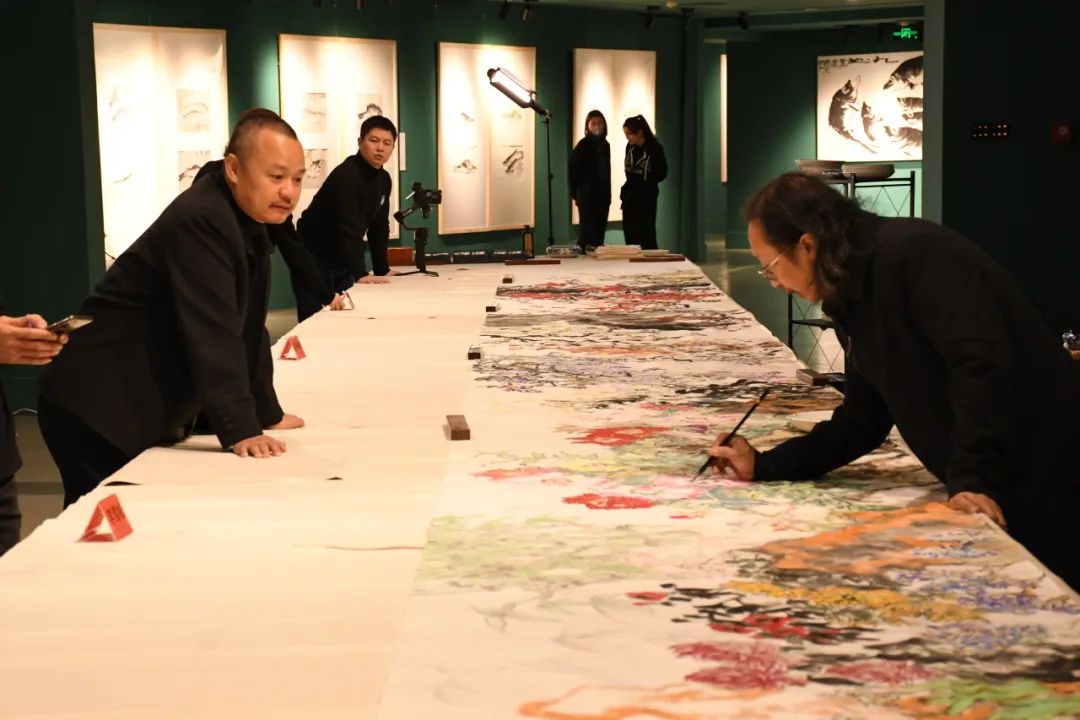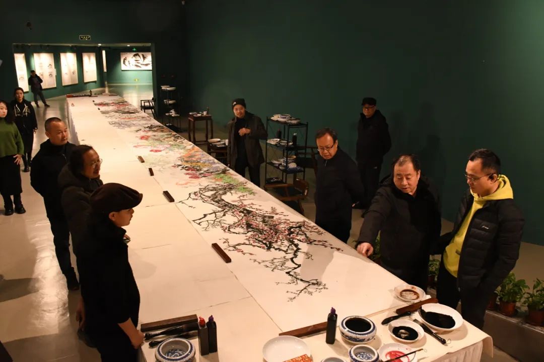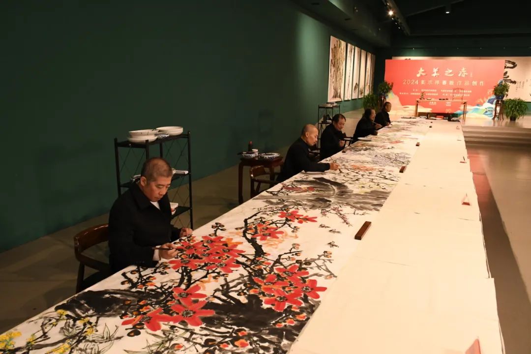辞别玉兔报晓时,迎来金龙送福至,为迎接2024“大美之春”春节联欢会的到来,中国美术家协会名誉主席冯远、北京画院副院长莫晓松、花鸟画创作室主任李雪松、广东画院副院长郑阿湃,深圳市关山月美术馆馆长陈湘波、广州美术学院副教授许晓彬、许敦平,七位艺术名家齐聚书画频道美术馆,共同创作17.5米长卷花鸟画作品《大美之春》,为全国人民送上了新春祝福。