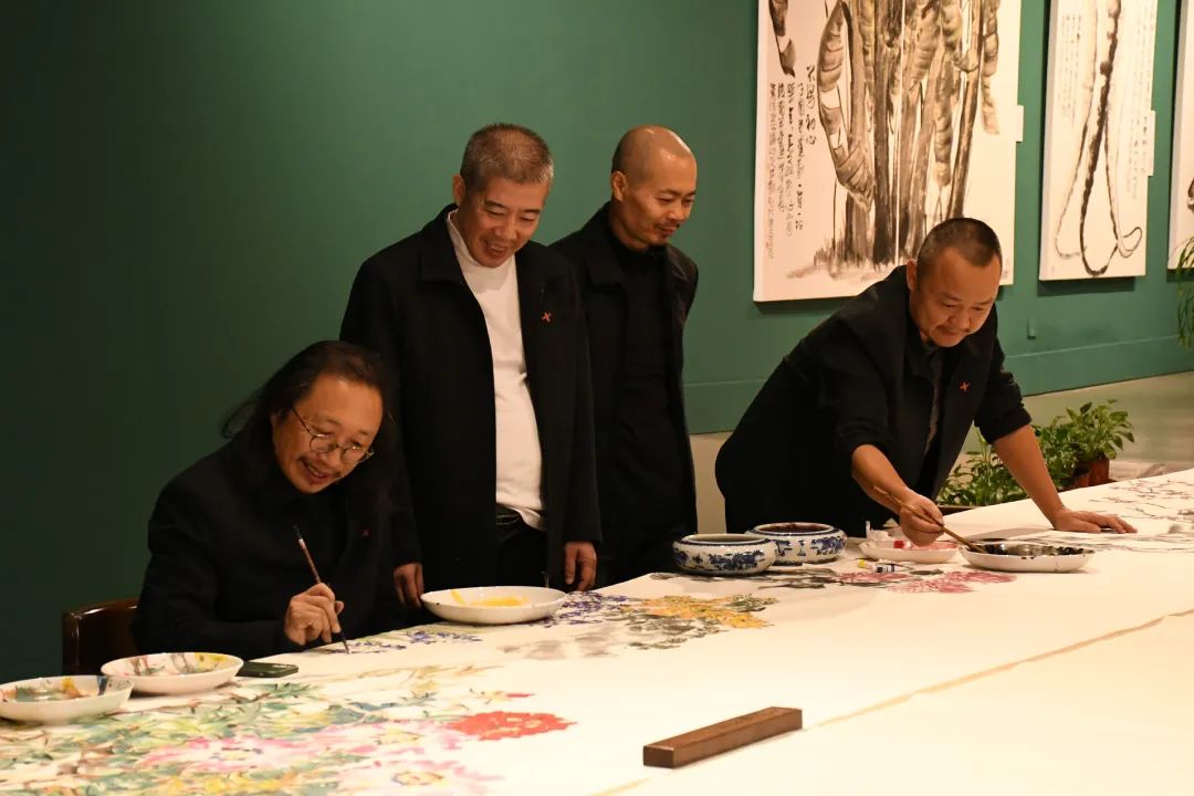 在创作中,艺术家们挥毫泼墨,相互交流,以精湛的技艺和饱满的热情将百花竞艳的繁荣景象描绘出来。