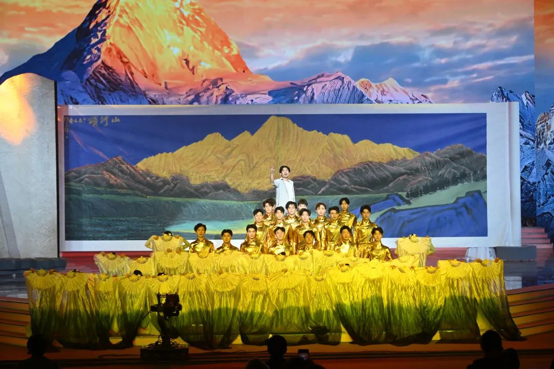 艺术的动人之处在于情感的共鸣,只有深入生活,走进人民,才能创作出无愧于时代的作品。徐里特别为大美之春创作的11米长、3.3米高的山水巨制《山河颂》的亮相,再次将晚会推向高潮。苍劲有力的线条在青绿厚重典雅的赋色中绘就了气势磅礴的神圣雪山,展现出了新时代、新气象、新格局、新观念,为美术界留下浓墨重彩的一笔。