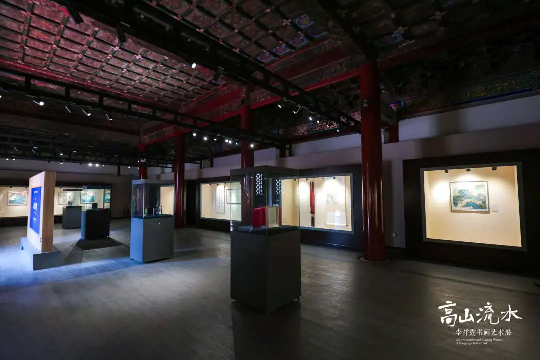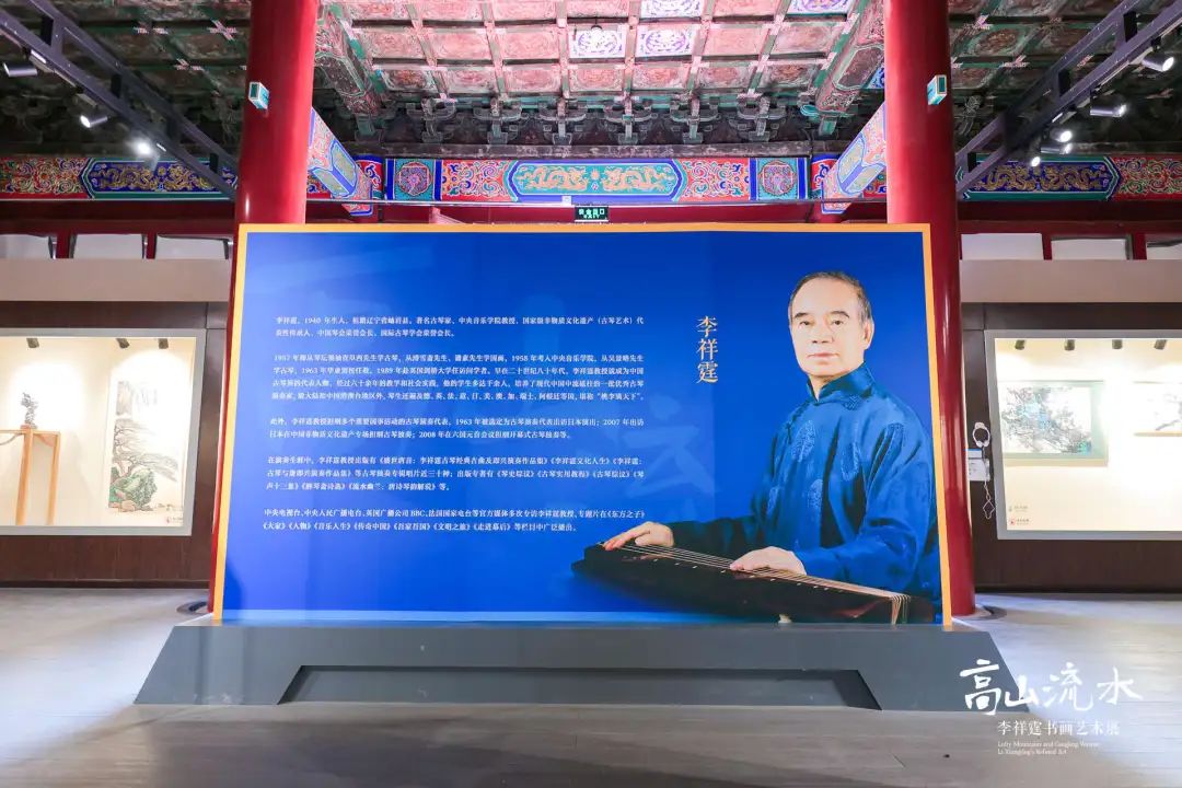 展览分为三个单元,第一单元呈现李祥霆创作的绘画、书法作品。李祥霆不仅在古琴领域拥有深厚的造诣,更在国画与书法方面展现出其独到的理解与感悟。在他的山水作品中,既融入了张大千、何海霞泼彩技法的精髓,又有汉唐壁画重彩的特色。其作品不仅是对自然美景的再现,更是对人文精神的深度探索和表达,为观者带来了独特的审美体验。
